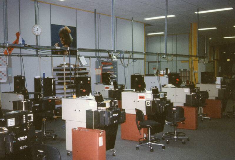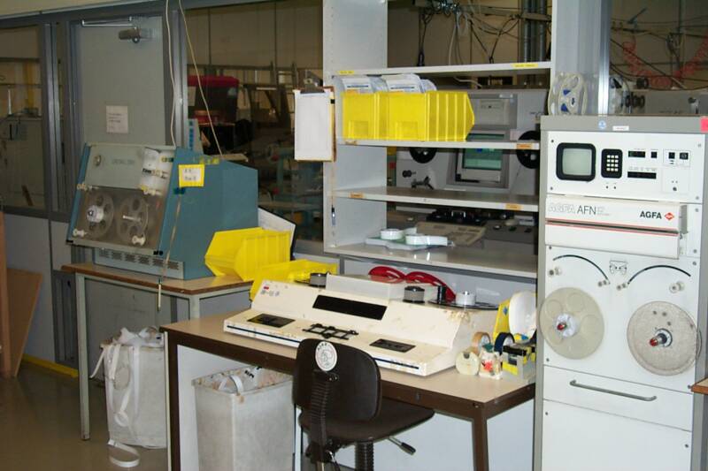 Spliceafdeling — Het splicen (aan elkaar zetten) van filmrolletjes op een batch.