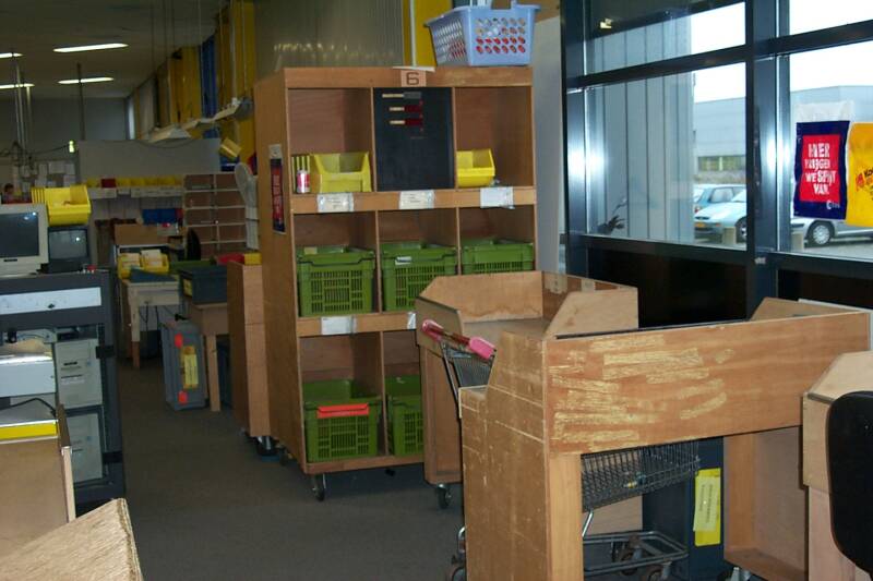 Magazijn kast en doorgeefluik naar doka.