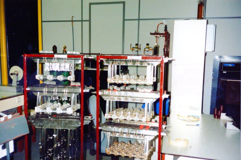 De vier filmontwikkelmachines van de Filmontwikkel afdeling.