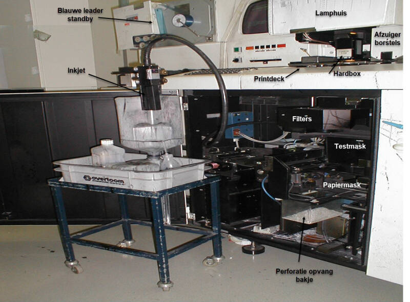 Aanzetten van de index scanners en de filmbaan schoonblazen.