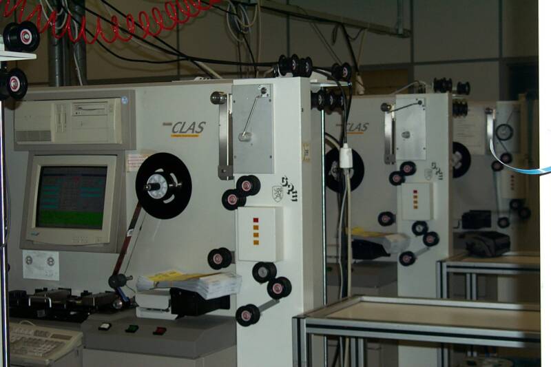 6. Papiertesten maken: Alle papiersoorten worden getest en opgespoeld in een takeup magazijn. Als de papierprocessor klaar is kunnen de testen ontwikkeld worden.
