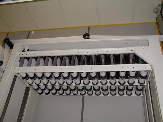 Door de muur over een geleidings systeem loopt het papier een kleine bufferconsole in. Deze console vormt een buffer voordat het papier de proces machine inloopt en zorgt voor gelijkmatige aanvoer van het fotopapier.